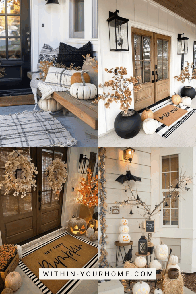 The more pumpkins, the better. I like mixing real and faux pumpkins so it looks full but doesn’t rot in a week. Stack them, mix sizes, use different colors (white, green, and orange are such a good combo).