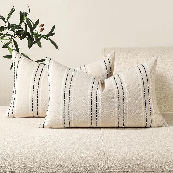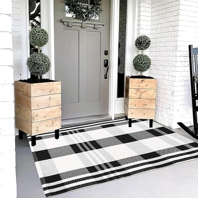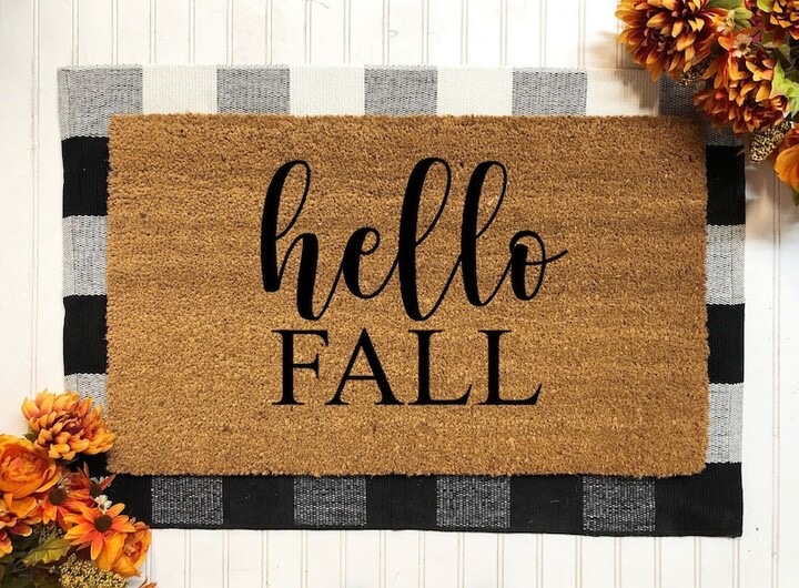 This is such a small change but makes a huge difference. Start with a basic coir doormat (something fall-themed or with a cute saying), then layer a patterned rug underneath. Buffalo check is classic, but even a simple neutral stripe works too.