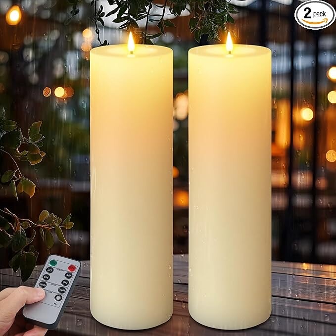 You’ll be shocked at how much cozier your porch feels at night when you add some soft lighting. I use black lanterns with frameless candles on a timer so they light up automatically every evening.