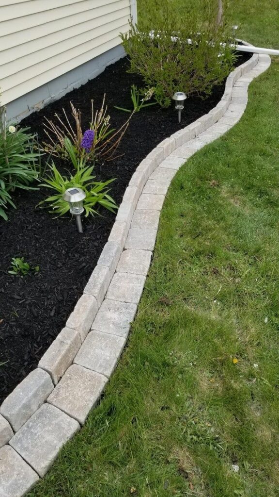 It defines the space, keeps mulch in place, and makes everything look way more professional. You can buy pavers or stacked stones from your local home improvement store and do this as a weekend project.