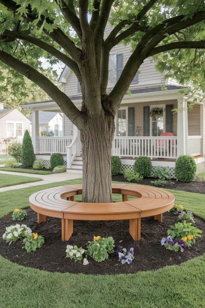 Have a big tree in your yard? Make it functional by placing a bench or chair, maybe a side table, and a little greenery. Add string lights if you want it to feel extra cozy.