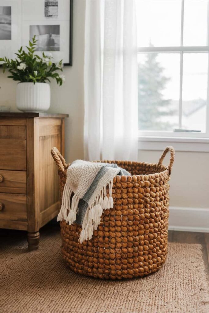 Add a woven basket, a linen throw, or a jute rug to bring in warmth and texture into your space. Layering natural elements creates visual interest without the clutter.