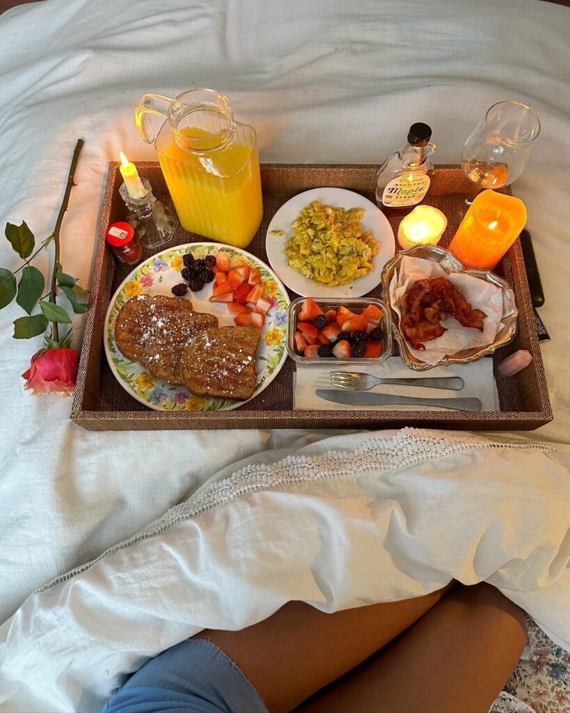 Lay a blanket on the floor, grab finger foods, and eat somewhere that isn’t the dining table. Add a candle or two and suddenly it feels romantic instead of random.