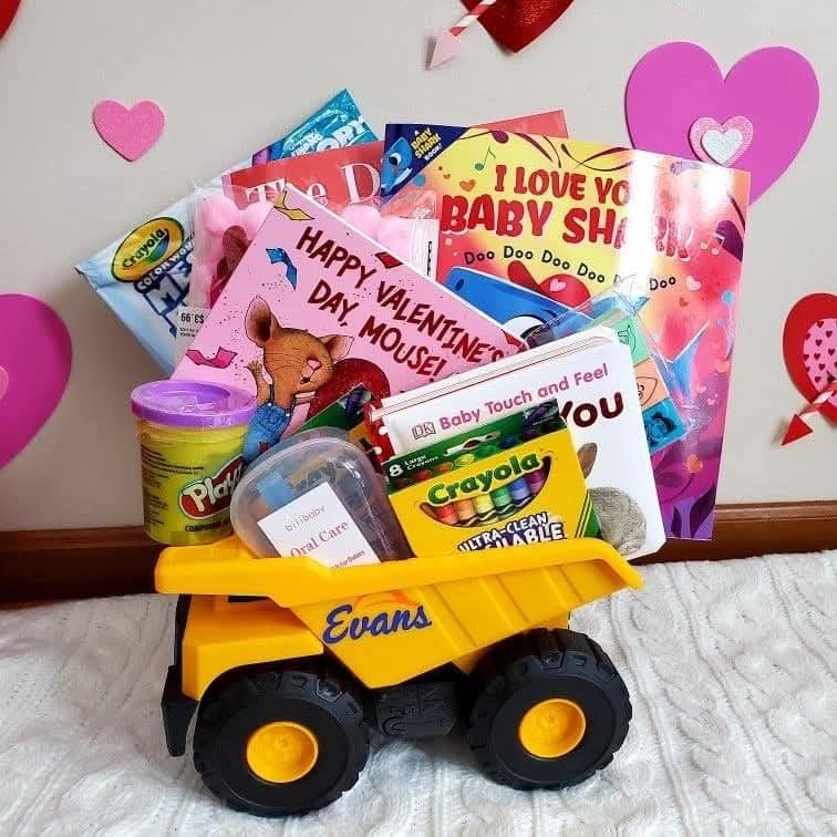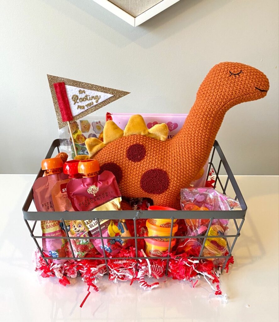 Proof that Valentine’s Day isn’t just hearts and pink. Dinosaur toys, books, and snacks make this basket perfect for your little Dino lover. It’s fun, playful, and totally kid-approved.