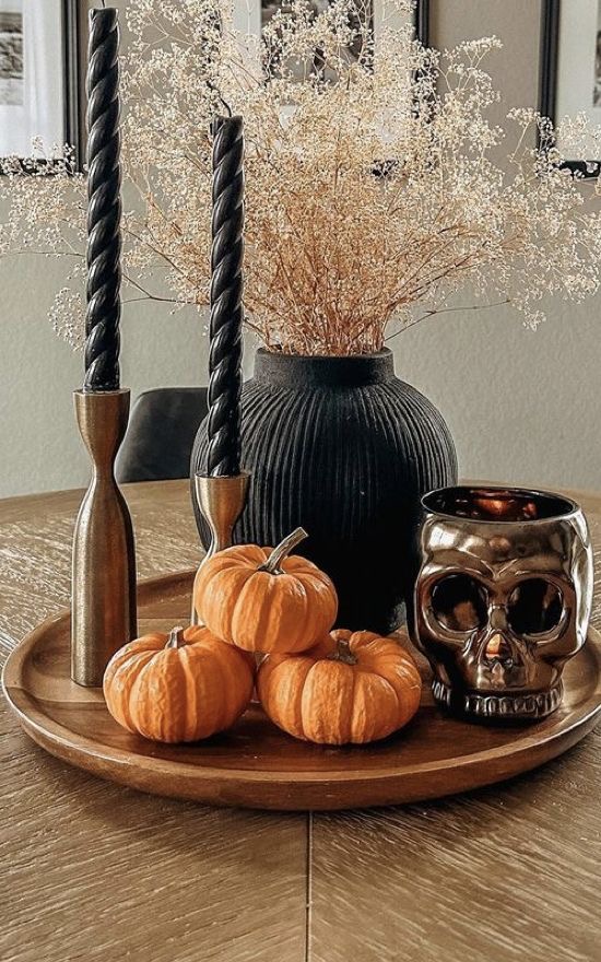 Leaning into darker accents with a hint of gold creates a moody vibe that’s perfect for fall..and gives a subtle nod to Halloween.