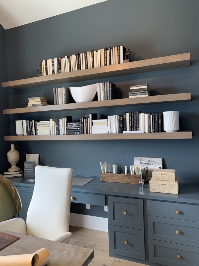 Matte black shelves basically turn your office wall into a moment. Plus, they make your decor look so intentional.