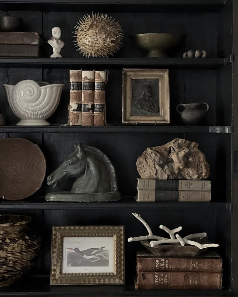 Even one small modern sculpture makes your shelves look like you put in way more effort than you actually did.