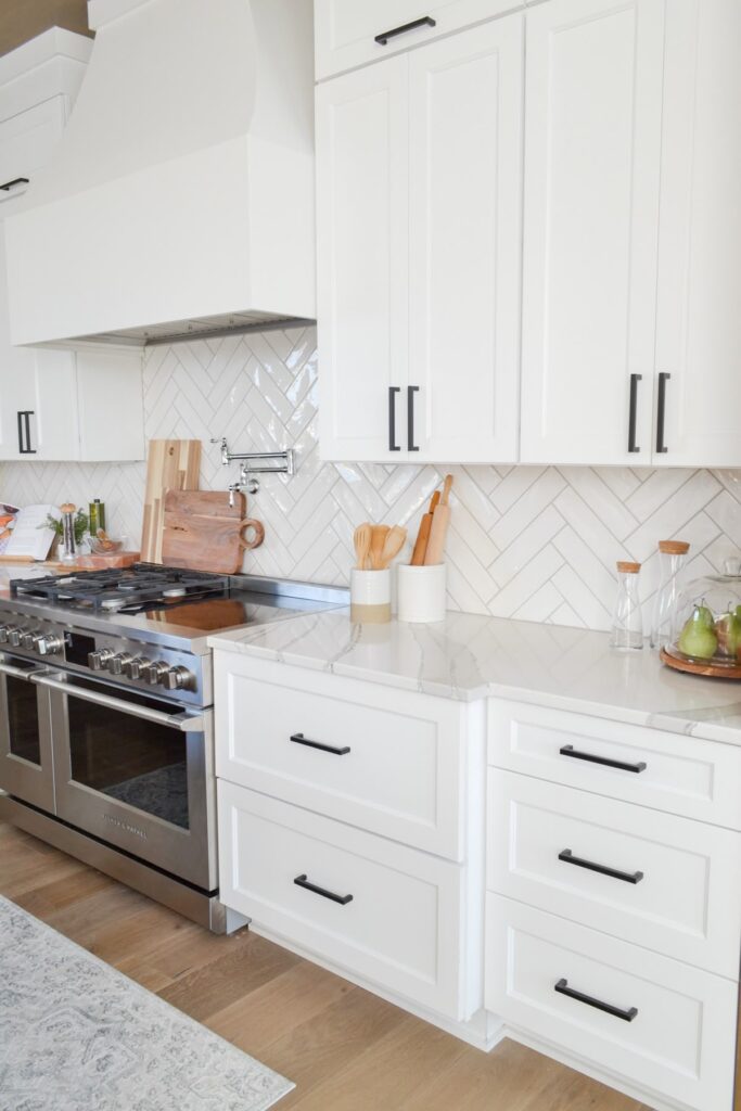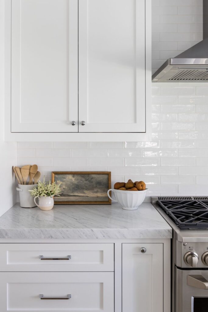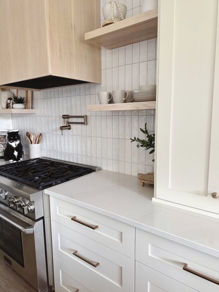 Sometimes the backsplash doesn’t need to scream. Clean tile paired with bold hardware can be the perfect balance.