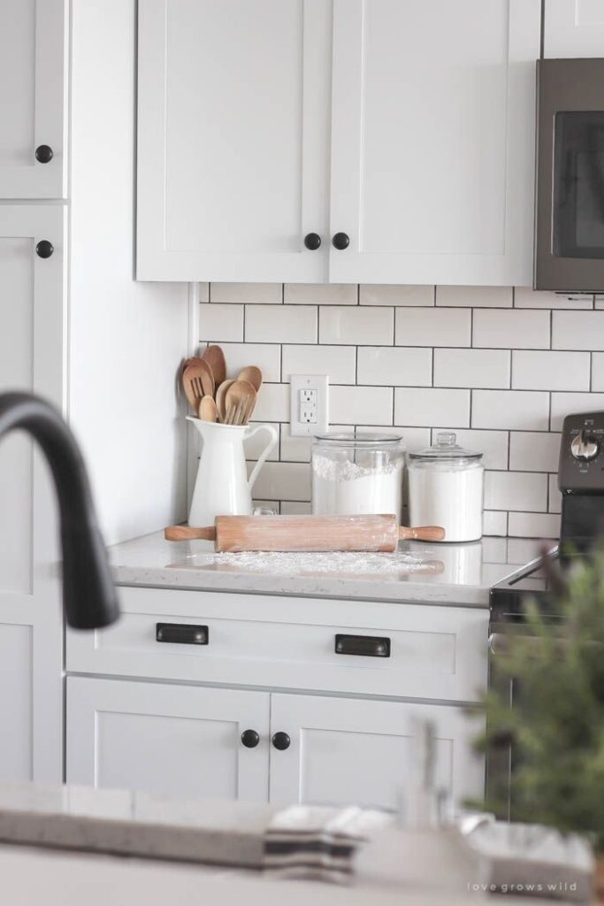 Same tile, completely different vibe. Dark grout adds contrast and makes the backsplash feel more intentional. Plus, it’s forgiving if you cook a lot.