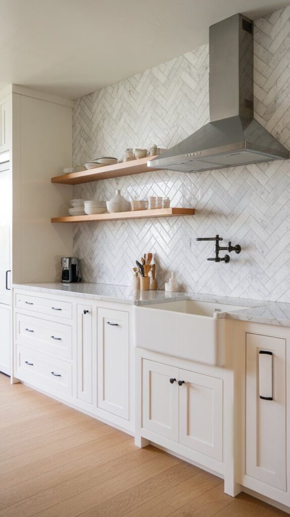Still neutral, but way more interesting. texture adds depth and keeps white kitchens from feeling flat.