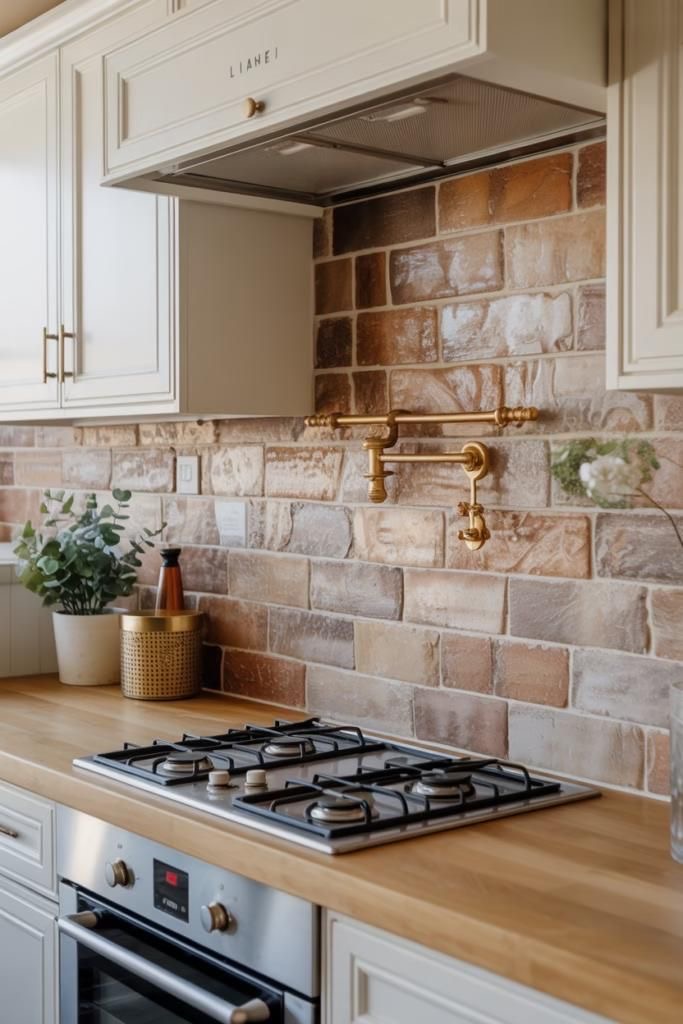This gives you that cozy, lived-in look without the mess of real brick. Great for farmhouse or transitional kitchens.