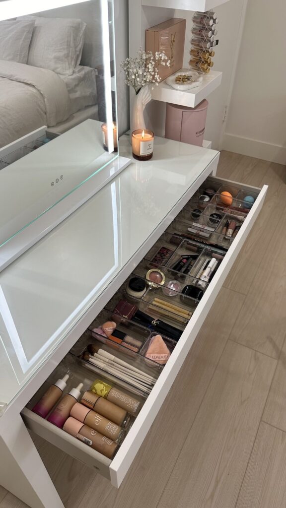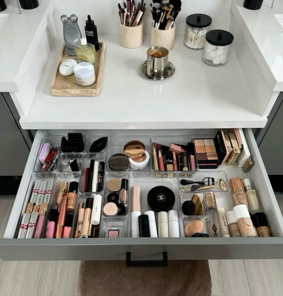 If your makeup lives in a drawer, this is your sign to add organizers. Being able to see everything at once makes getting ready so much faster.