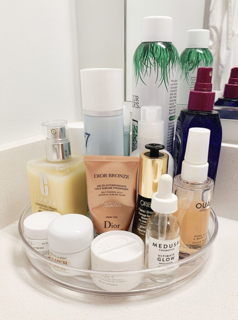 If you’ve never tried a lazy Susan for makeup, you’re missing out. They’re perfect for foundations, sprays, and skincare you use alongside your makeup.