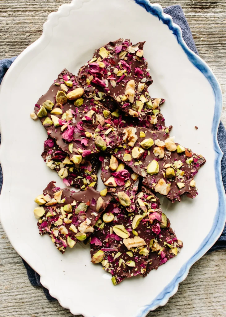 15. Dark Chocolate Bark With Pistachios and Dried Rose Petals