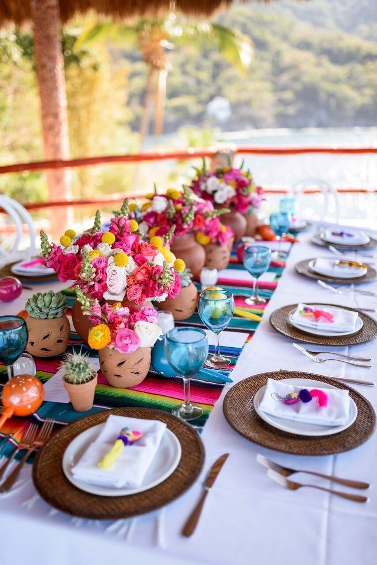 Rust, mustard, and terracotta colors with southwestern food and spicy margaritas. perfect for hot summer nights.