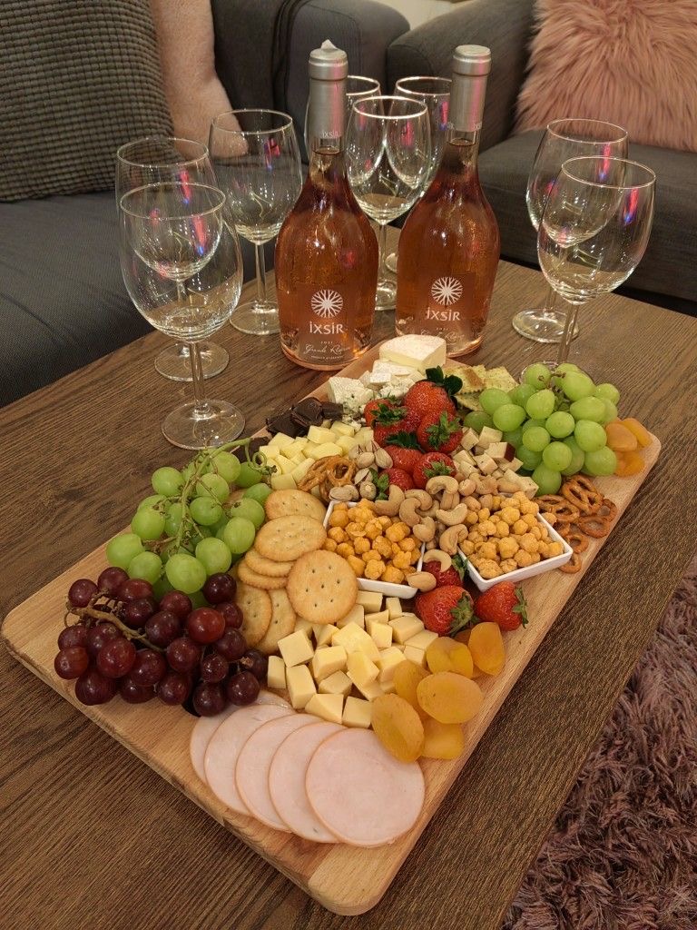 Grab a few bottles of wine, throw together a massive charcuterie board, and let everyone graze. You don’t even need a full meal…just snacks and a cozy vibe.