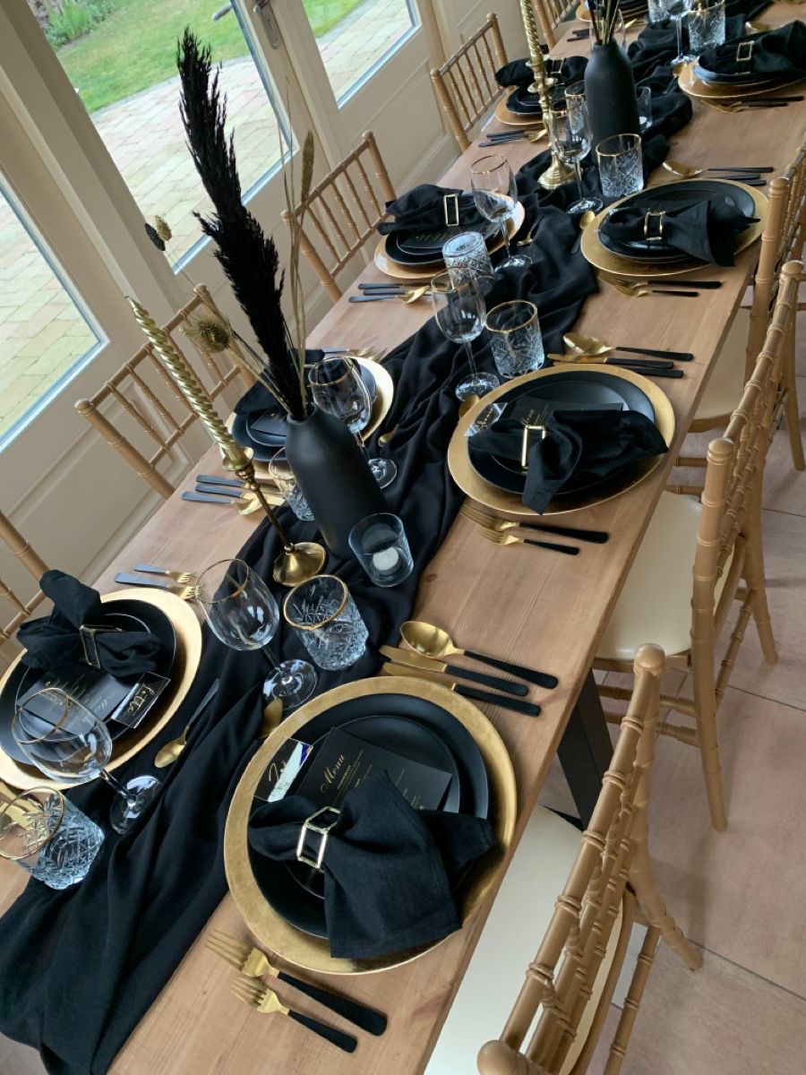 This if for when you want to feel fancy fancy. Go all out with black tablecloths, gold flatware, and candles.
