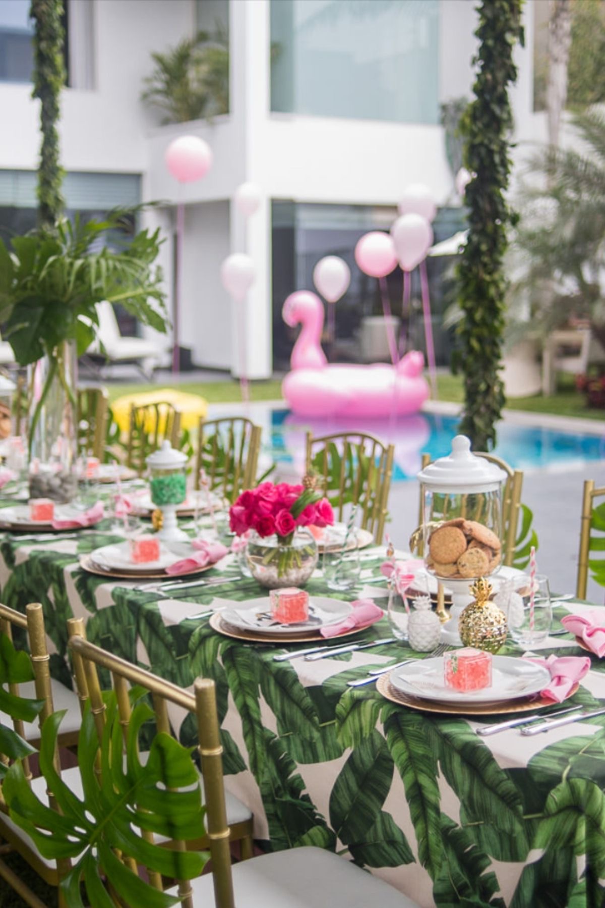 This one is SO fun and honestly underrated. Think coconut pancakes, mango smoothies, and fruit skewers. Decor-wise, use palm leaves, bright florals, and tropical colors like a beachy vacation.