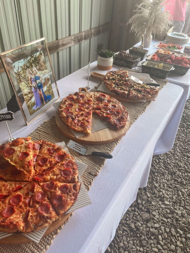 Order a bunch of pizzas, get cute paper plates, and go full 90’s backyard hang. It’s casual, nostalgic, and literally no one will be mad about it.