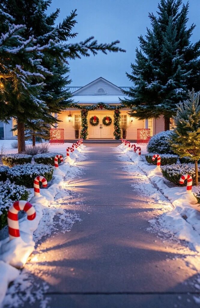 Line your walkway with candy cane stakes. It’s fun for kids and super easy to do.