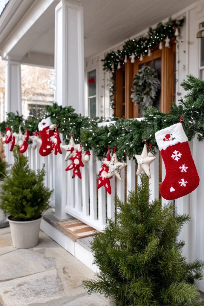 Hang oversized stockings from your porch railing for a playful, unexpected touch.