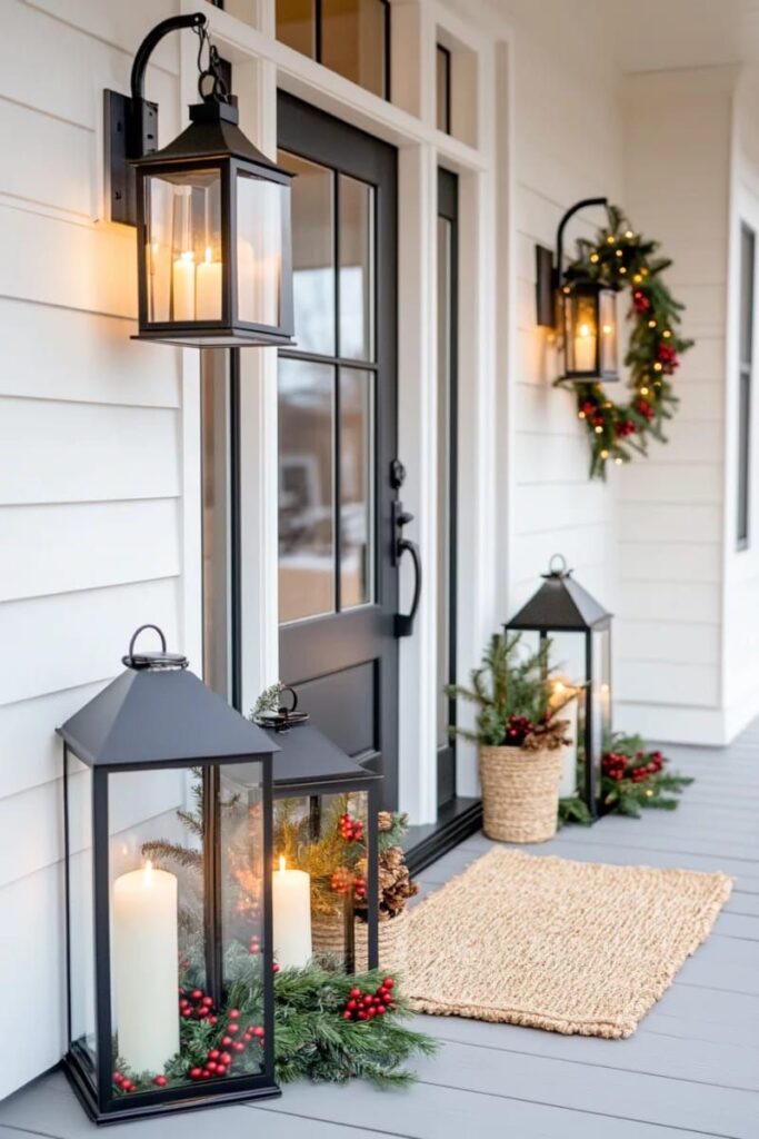 Group a few lanterns with candles or fairy lights on your porch steps for a warm glow.