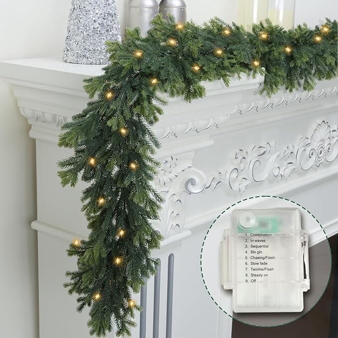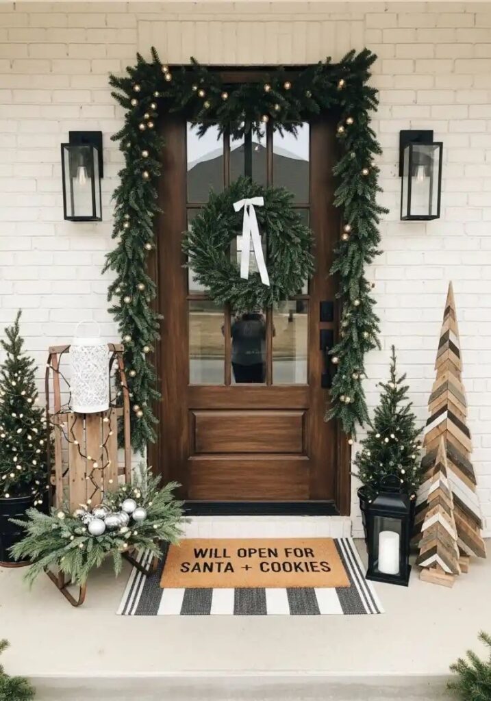 Drape garland along your porch railing, mailbox, or stair banister. Add lights, bows, or berries to make it pop.