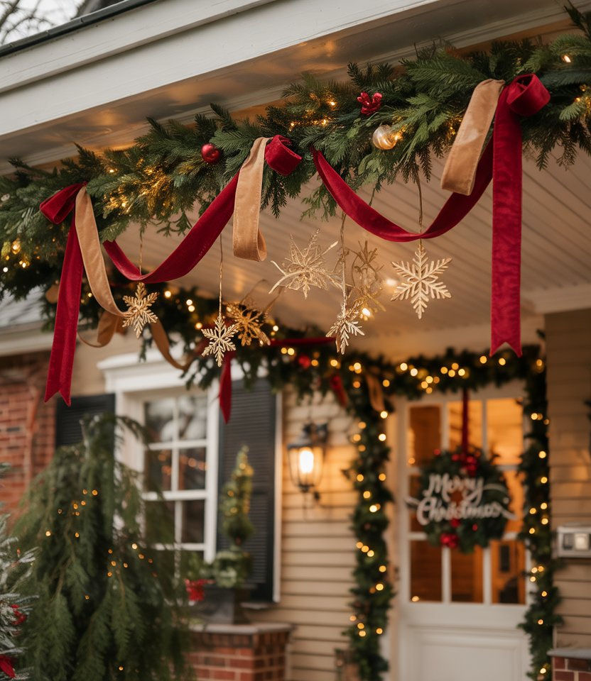 Tie large red bows to your front porch post, lampposts, or even outdoor furniture, Instant festive cheer.