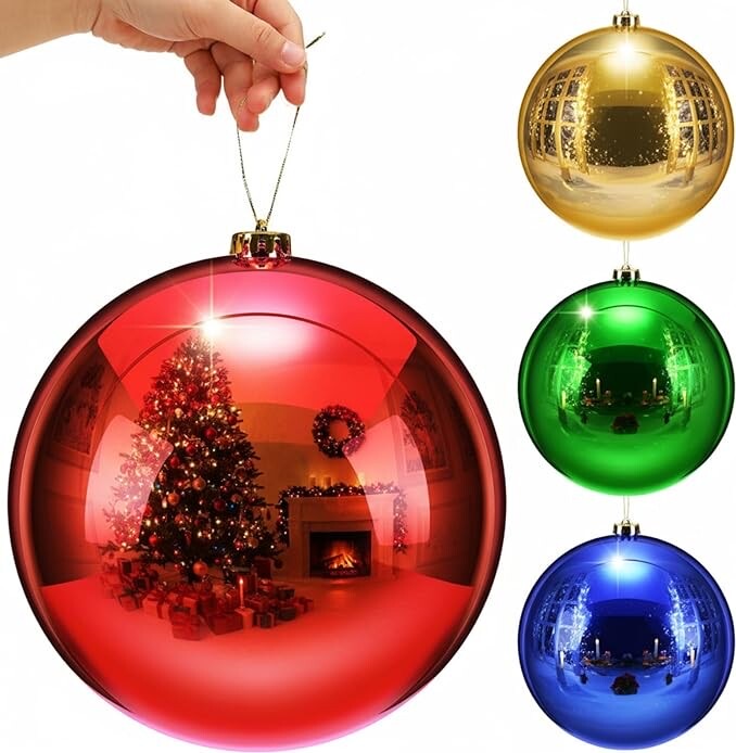 Use large outdoor ornaments in trees or from hooks around your porch for a colorful pop.