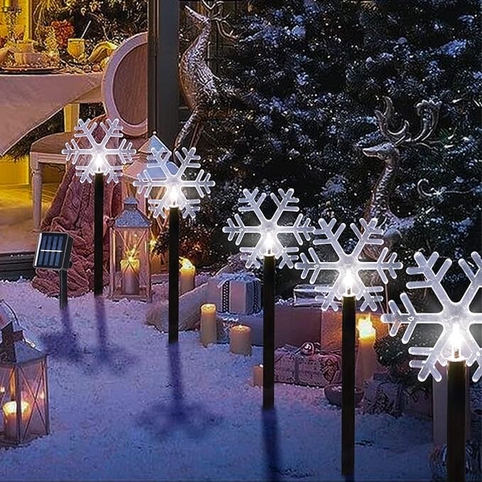 Place snowflake-shaped stakes along your walkway or garden beds. They’re simple, elegant, and festive.