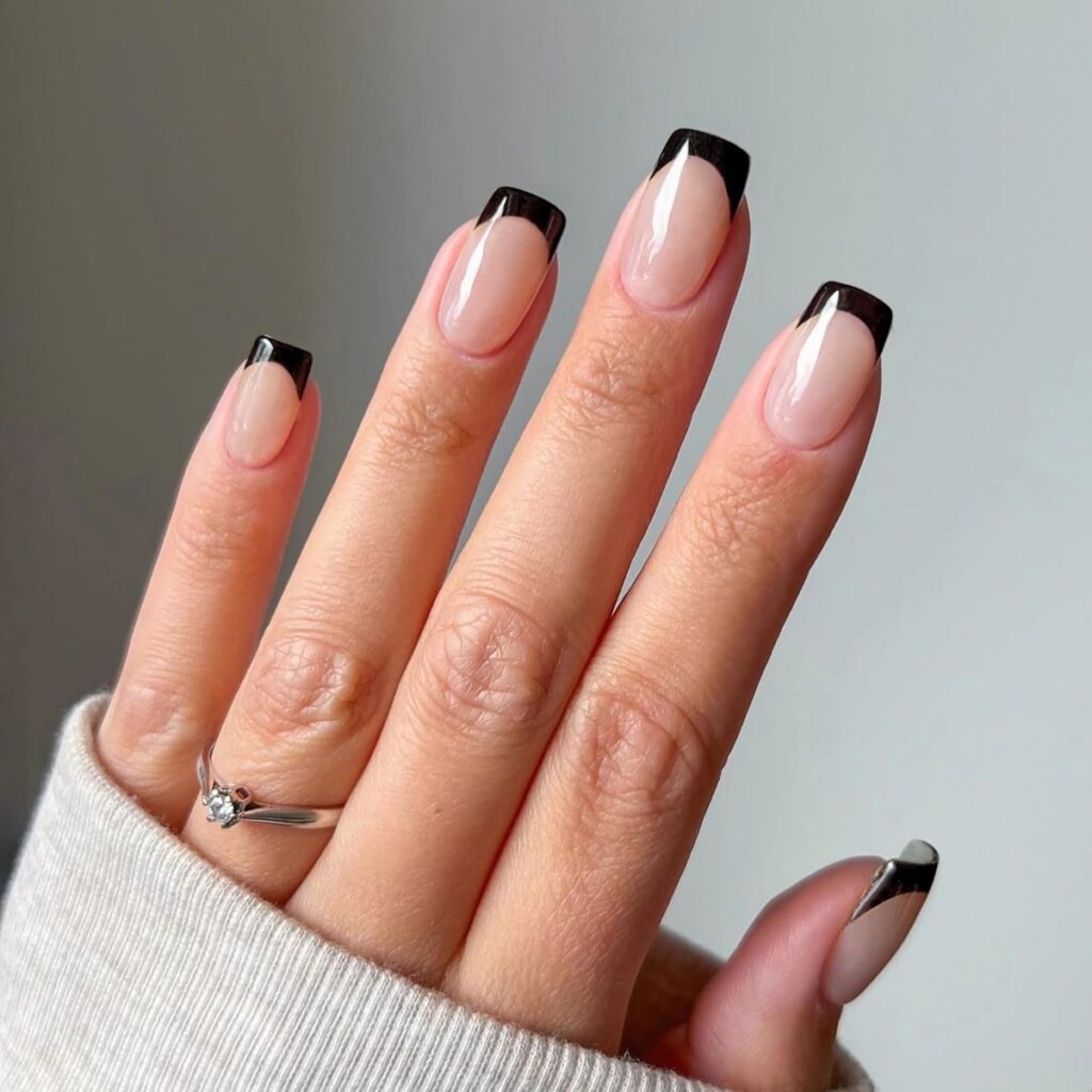 A classic French but with black tips instead of white. Add a thin silver line under the tip if you want extra sparkle.