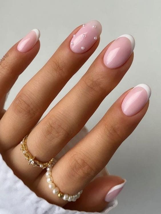 Soft nude polish topped with tiny pearls. This one is so feminine and subtle.