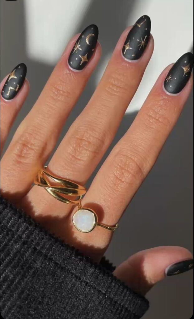 Matte black is always a vibe, and adding little gold stars makes it feel NYE-ready.