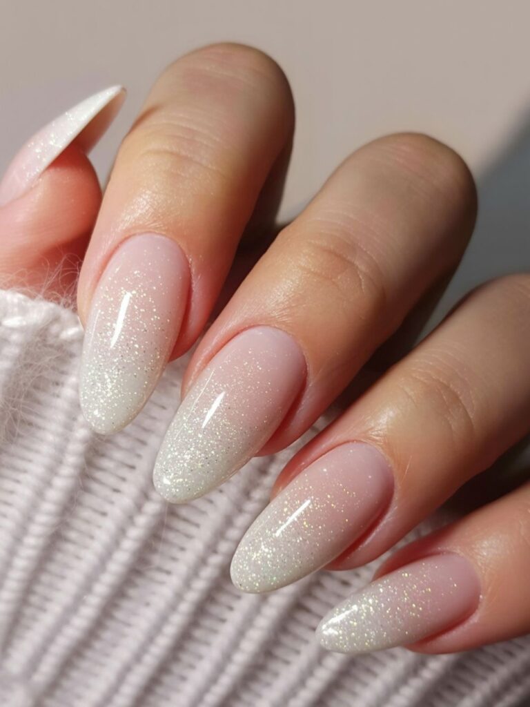 A white to clear ombré with a hint of shimmer. Clean, frosty, and perfect for January.