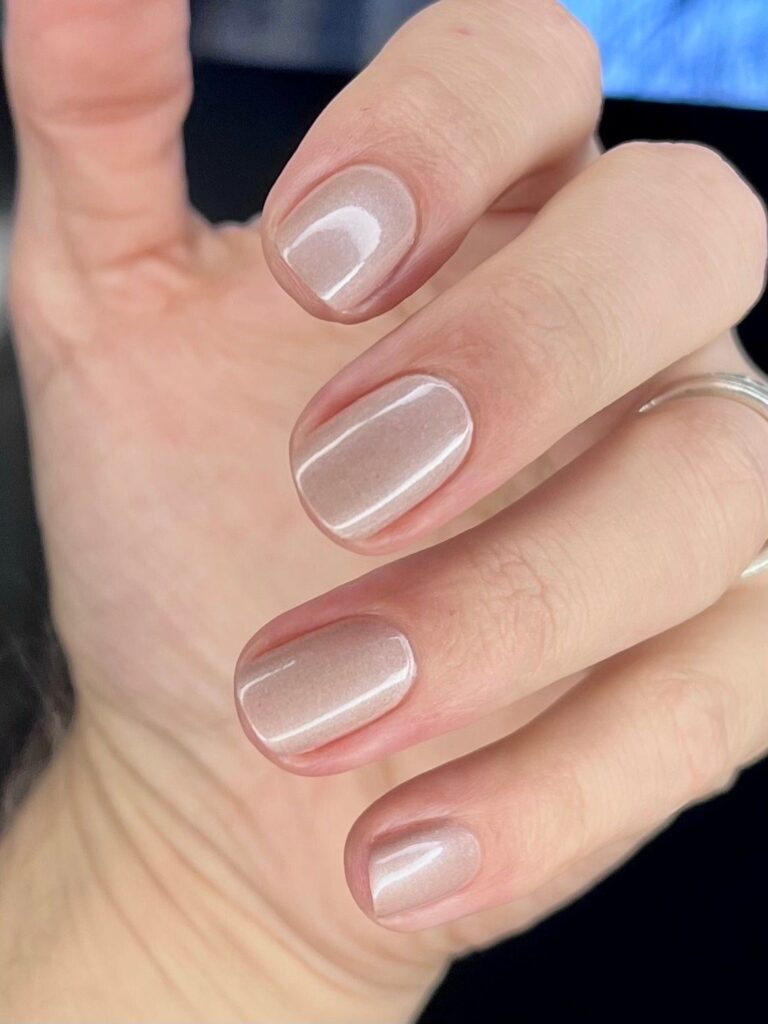 If you want that “fresh start” look without going full glitter, champagne glaze is perfect. It’s soft, pearly, and catches the light in the prettiest way.