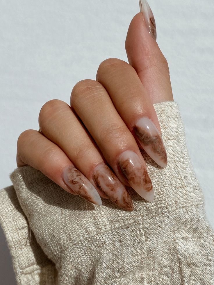 Thick creamy beige and warm brown swirled together…basically nail art that looks like a cinnamon latte.