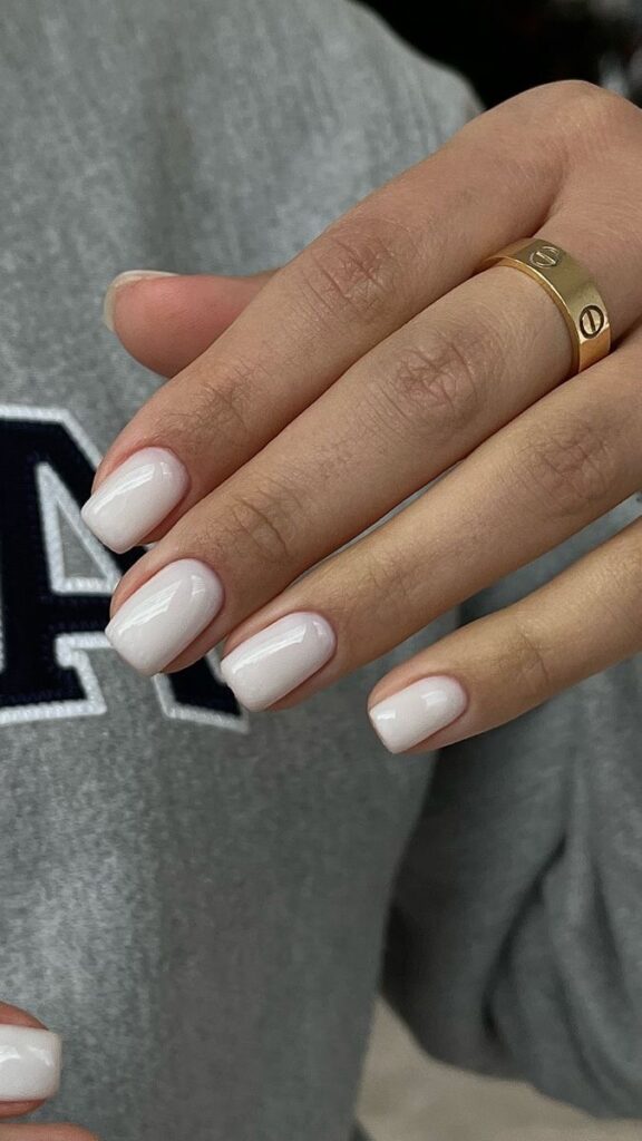 A milky white that’s not opaque — soft, translucent, a little bit ethereal. It brightens the hand without the starkness of a full opaque white and it works in every season without looking out of place.