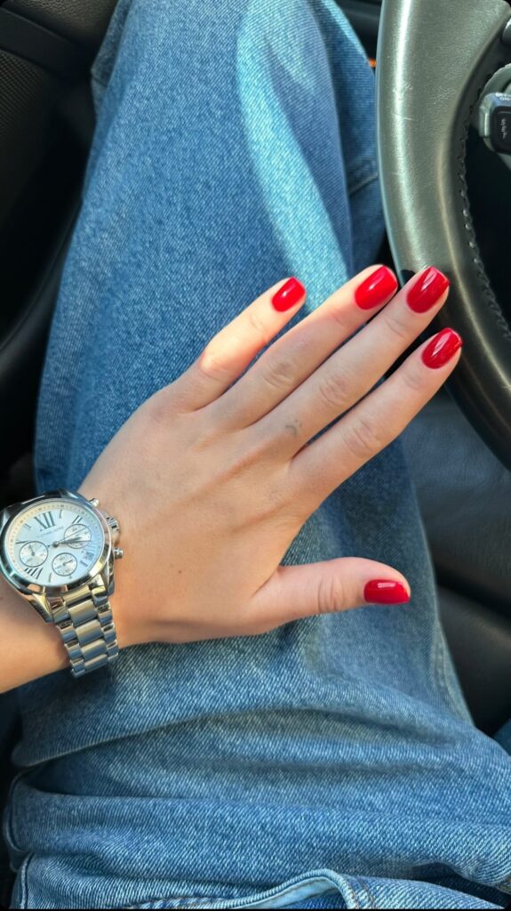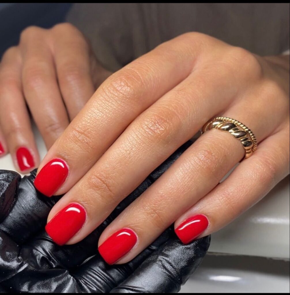 There is nothing a short square nail does better than a classic red. Clean, sharp corners, a rich red — it’s one of the most confident and timeless nail looks there is.