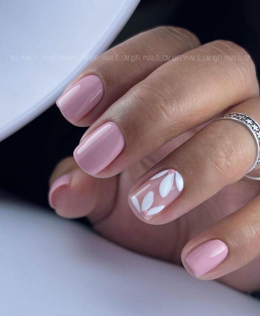 A chrome accent, a different color, a small piece of nail art. The short square shape makes the accent nail stand out in the best way because the lines are so clean everywhere else.