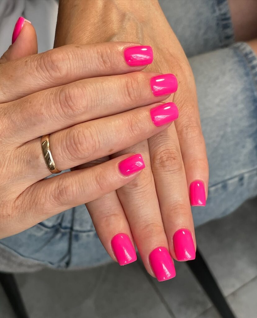 A neon pink on short square nails is the nail equivalent of a great summer dress. Wear it confidently and it looks exactly right.