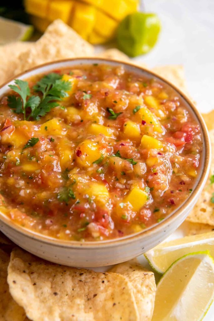 This is the salsa that gets the most comments at any party because it’s unexpected and genuinely delicious. Fresh chips alongside and it’s the first thing gone.