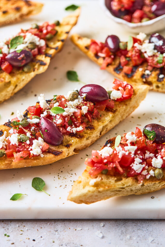 Good tomatoes, fresh basil, garlic, and olive oil on grilled or toasted bread. Done well it’s one of the best things you can eat and it looks beautiful piled onto a big platter. The key is good tomatoes and not making it too far in advance.