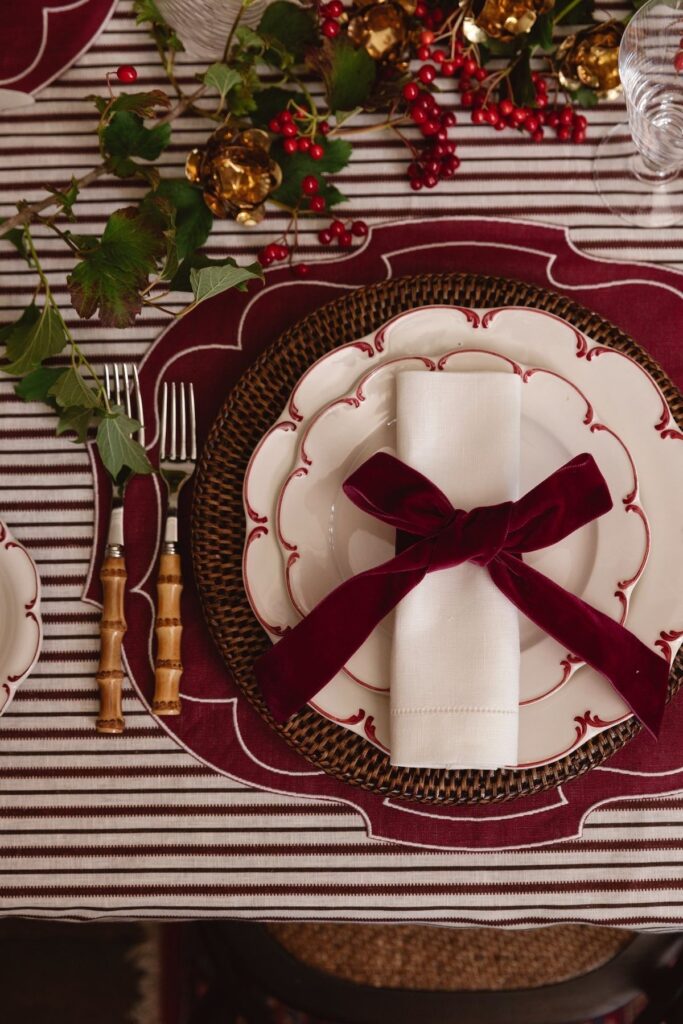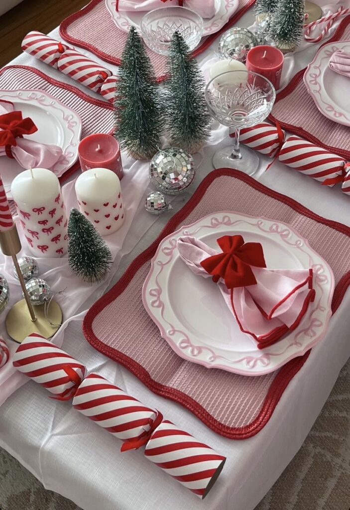 Add a candy cane at every place setting, red striped napkins, and a peppermint-inspired centerpiece. It’s fun and playful, especially for families with kids.